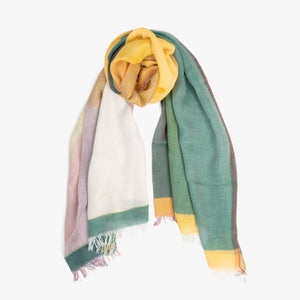 SMALL / BLOCK-WEAVE COTTON STOLE – HAND-DYED SLUB YARN