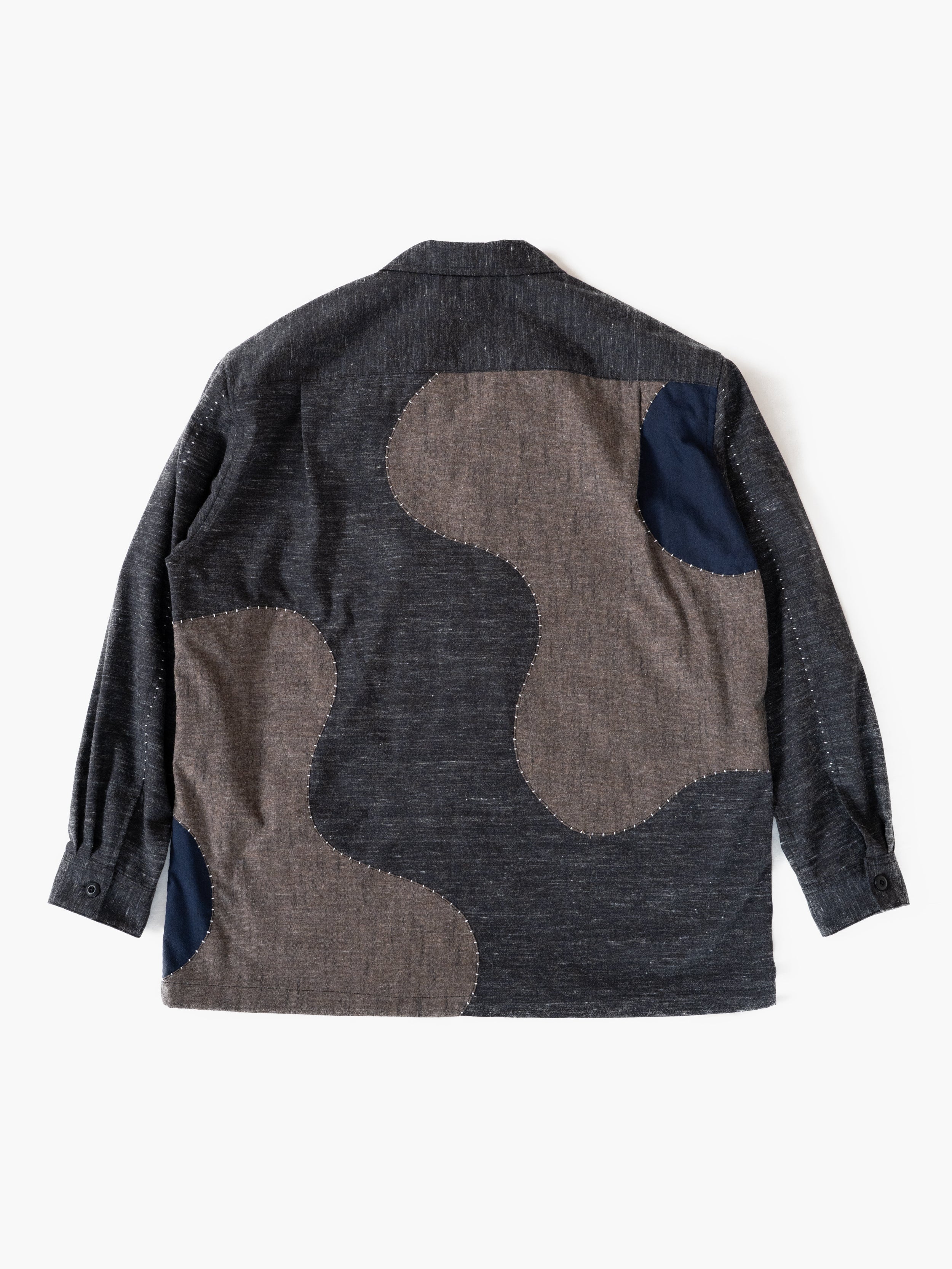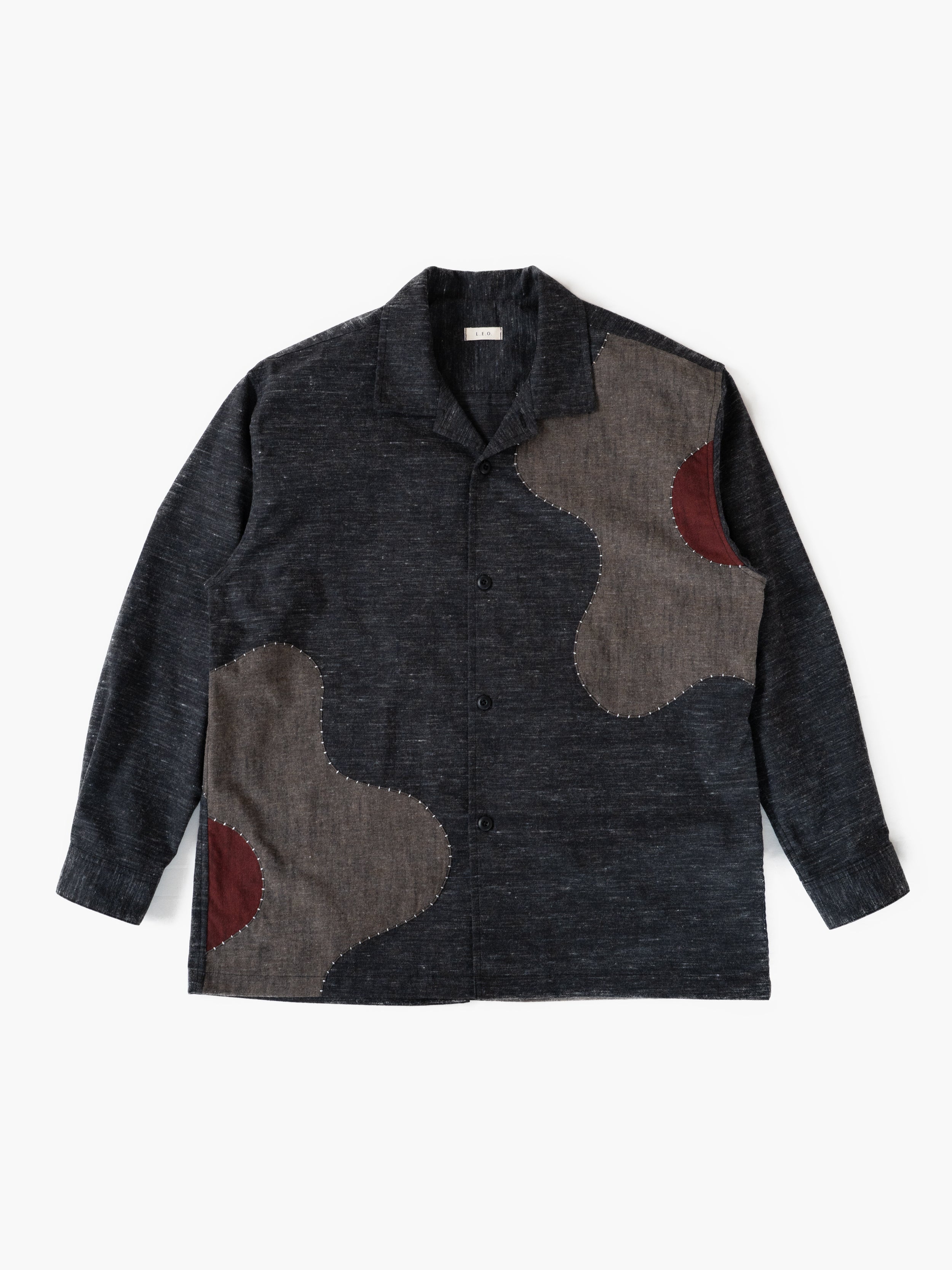 生地の織りあげから加工、縫製まで、すべてを自社工房で仕上げたオリジナルのシャツです。 素材は肌ざわりの良い綿100%。季節を問わず快適に着られ、洗うほどに風合いが増していきます。フロントからバックにかけて大胆に描かれたフラワーデザインは、「波」のウェーブ感をイメージしながら描いたお花。刺し子ステッチで縁取ることで、立体感と温もりをプラスしました。一針一針を丁寧に縫い込んでいるため、同じものは二つと存在しない、まさに一点ものの特別な一枚です。