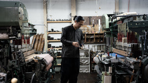 Based in Nishiwaki City, Hyogo Prefecture, L.E.O. is led by Tomohito Koizumi, our founder and designer, who personally operates an 80-year-old vintage shuttle loom. Carefully overseeing the final color and texture, he creates original fabrics with meticulous attention to detail.
